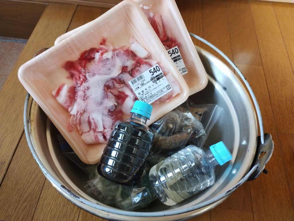 トップケース代わりの芋煮鍋には芋煮キットを積み込みました。