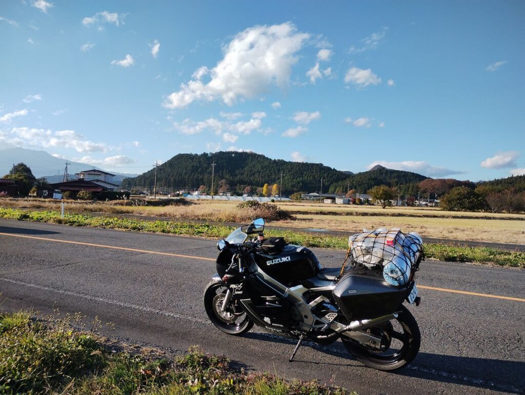 やわらかい秋の日差しの中、いかにもツーリングしてるっぽい雰囲気で大満足です。