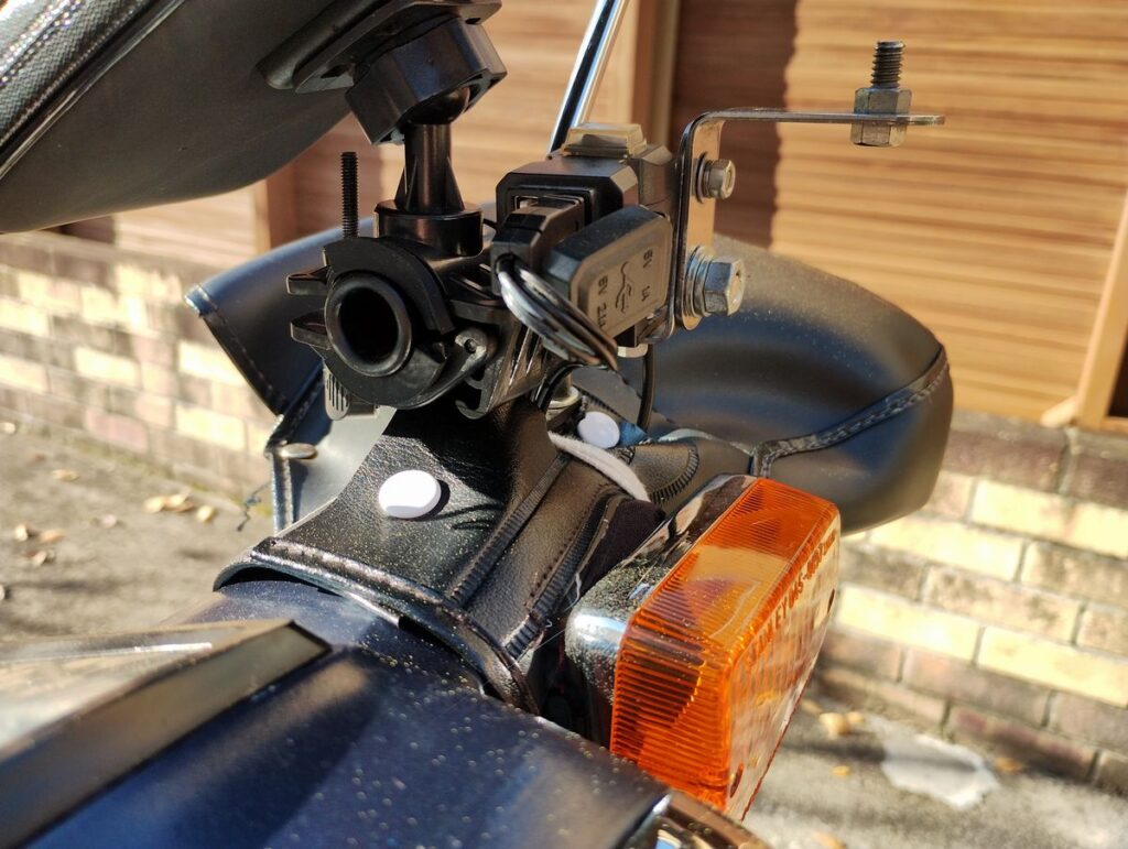 USBコネクターには、グリップヒーターの電源ケーブルを差し込みました。