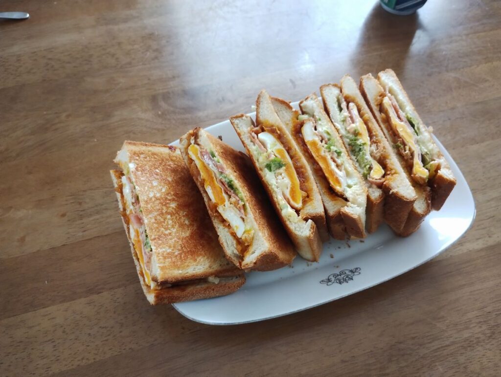 朝食はホットサンド、たまには、パンのお正月も悪くないですね。