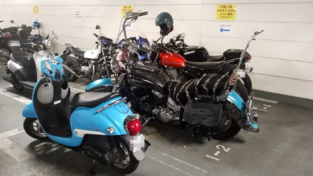 駐輪場には多種多様なオートバイが停まっていて、眺めるだけでも楽しいです。