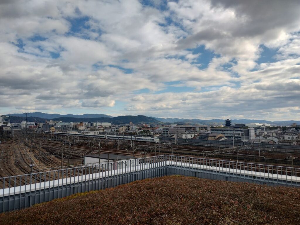 博物館の屋上からは、東寺の五重塔をバックに東海道本線を行き交う列車が堪能できます。