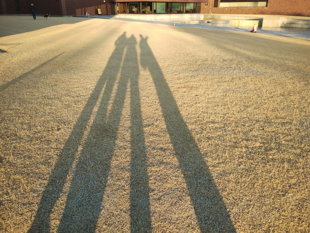 春の夕陽に長く伸びる家族の影、たいぶ日差しも強くなりましたね。